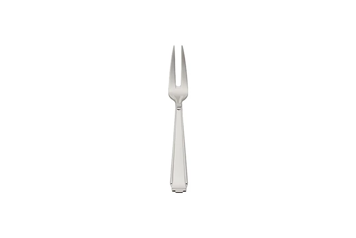 Die kleine Fleischgabel aus der massiv versilberten Robbe & Berking Besteck Serie Art Deco