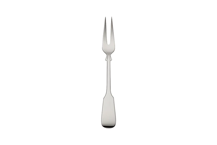 Die Robbe & Berking Silberbesteck Edition Spaten reicht bis in das Gründungsjahr des Flensburger Unternehmens zurück. Die Formgebung ähnelt der Kollektion „Alt-Spaten“, ist jedoch am Griffende (der Spatenform) und den „Ohren“ unterhalb der Gabel- oder Löffellaffe nicht ganz so ausgeprägt. Das Besteck ist spülmaschinenfest. Beim Abendbrot kommt die Familie zusammen, berichtet vom Tag und reicht sich gegenseitig die Speisen. Eine edle Note bekommt die Familienzusammenkunft, wenn Sie Ihren Lieblingsmenschen die Wurst mit der großen Robbe & Berking Spaten Silber Fleischgabel reichen. Sie ist mit zwei Zinken versehen und ca. 18cm lang. Die passende Gabel und das passende Messer für Ihren Abendbrottisch finden Sie in der Kollektionsübersicht. Nachkaufgarantie bis 2040.