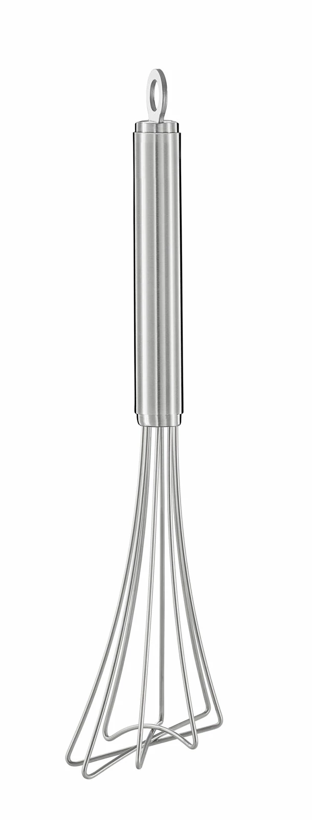 Mit dem 27cm langen Gourmetbesen aus der Küchenhelferkollektion von Rösle können Sie ganz leicht geschmeidigen Teig herstellen. Die besondere Form der stabilen Schlaufen erlaubt es Ihnen, in jede Ecke und Kurve zu gelangen, sodass alle Zutaten verarbeitet werden. Auch in Töpfen und Pfannen, wo andere Schneebesen Schwierigkeiten haben. Ideal für die Zubereitung von Saucen!