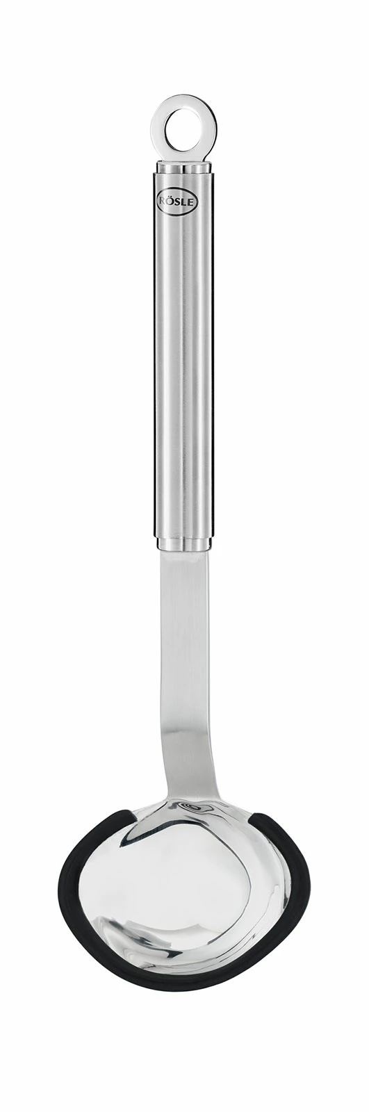 Der Saucenlöffel mit Rundgriff und Silikonrand aus der Rösle Küchenhelferkollektion