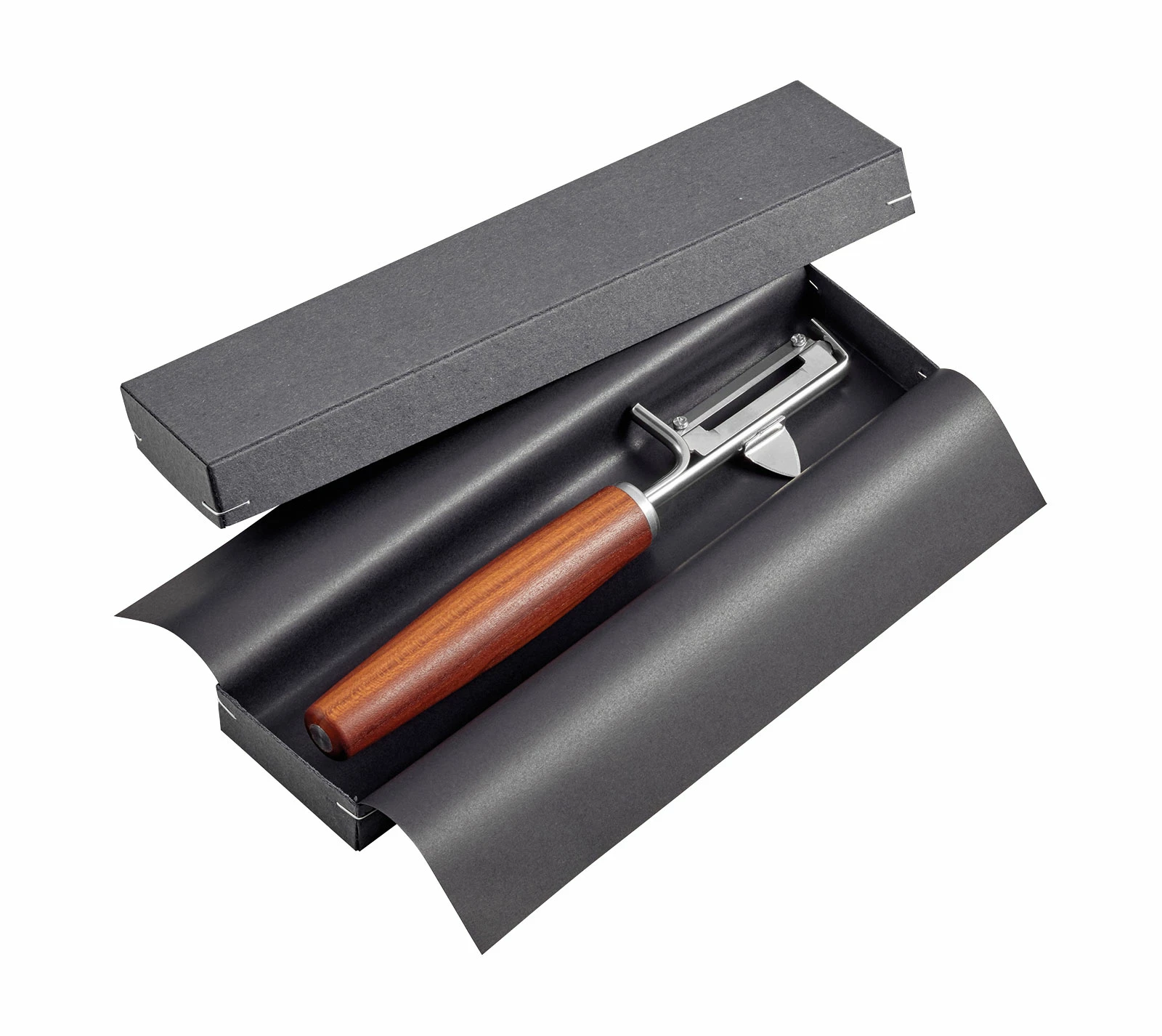 Der Sense Pendelschäler rechts mit Pflaumenholz-Griff von Triangle Solingen